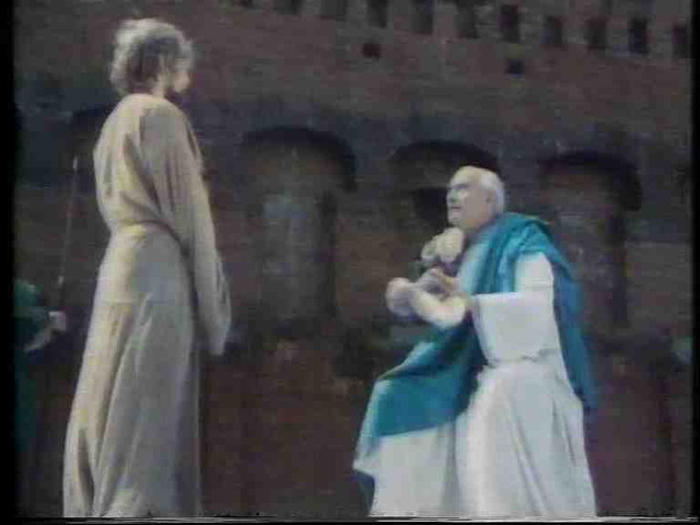 SINOPSIS: CRÍTICA: Como todas las pelis de Wadja (al menos las que he intentado ver) contiene imágenes duras e intragables.. en concreto esta peli empieza en un matadero industrial de ovejas y hay un periodista entrevistando a una oveja que guía a las demás a la muerte masiva. He pasado de hacer capturas de esa zona. Luego empieza una especie de versión del juicio a Jesús medio moderno medio antiguo..en fin,..una rareza en VOSE que desconozco si está en DVD o ya compartida pero esta grabación en beta de la tele no se podía pasar por alto