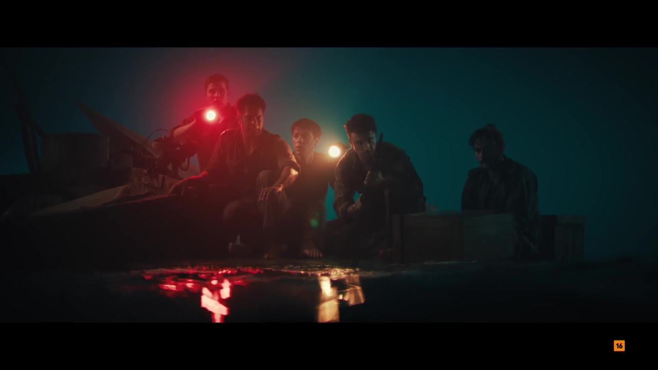 Sinopsis; Unos soldados australianos, varados en una balsa en el océano abierto tras un ataque enemigo, deben luchar por sobrevivir contra un enorme y hambriento gran tiburón blanco.